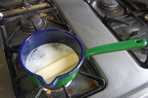 Derretir la mantequilla sin sal de un stick (8 cucharadas) y deje que se enfríe