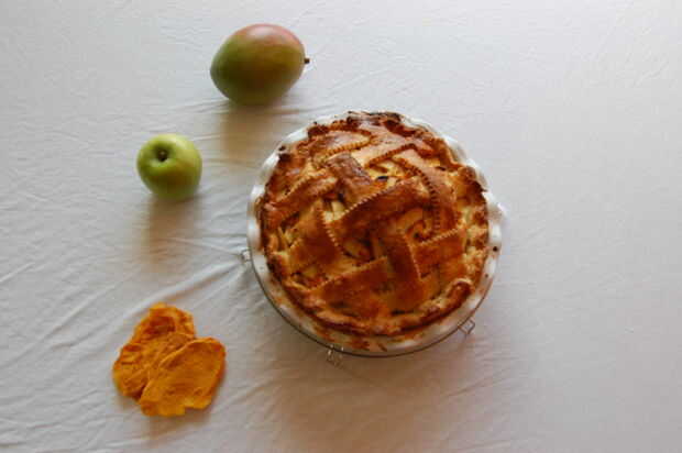 tarta de Mango es uno de mis favoritos! Es similar en sabor a una tarta de melocotón, pero un poco más agrio. Añadir cardamomo a mi pastel de mango porque los sabores trabajan muy bien juntos. También utilizo mangos frescos en la mía - nunca he tenid