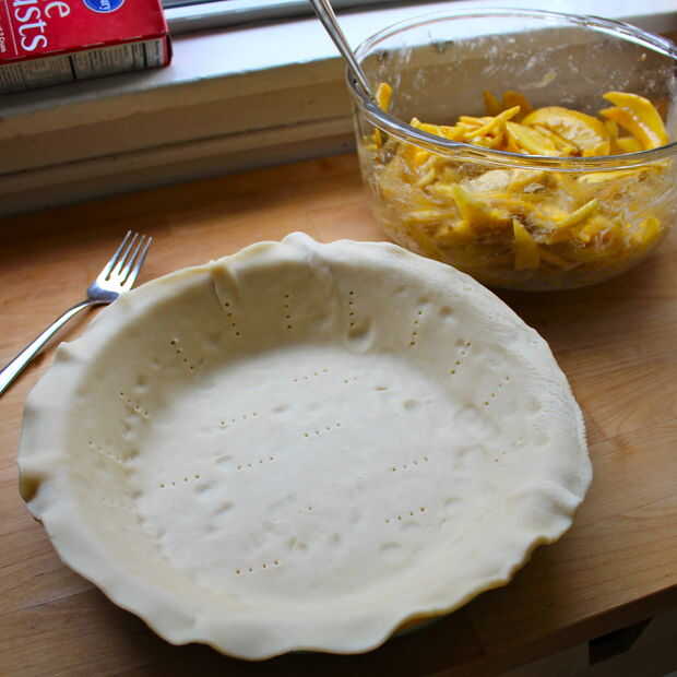 Luego cortar el borde de la corteza inferior por lo que es incluso con el borde de la cacerola.