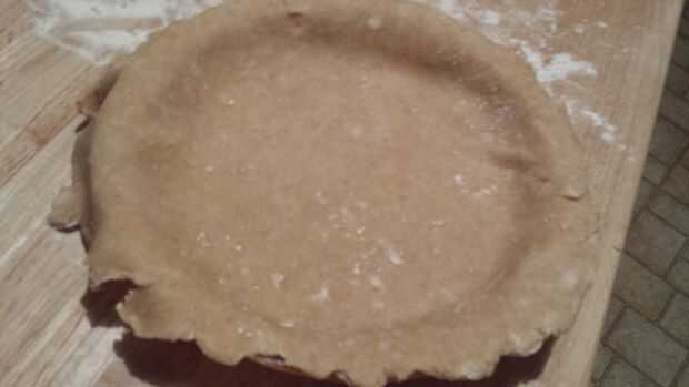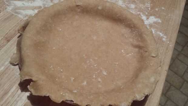 Ahora que la tarta es agradable y fría, separada en dos mitades y rodar hacia fuera. Una de las mitades van en la tartera.
