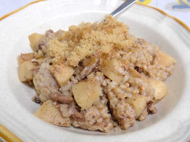 este sabroso manjar es un híbrido entre la tarta de manzana y crujiente de manzana. Empiezas con una base de tarta y rellenos de pasteles, y luego arriba las manzanas con una panela miga topping. Es mejor servido caliente con helado o crema batida.