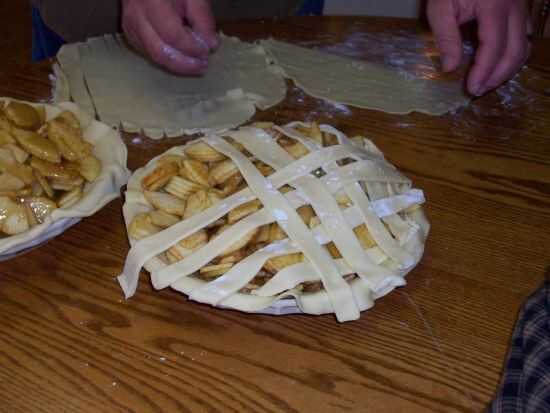 Hacer un enrejado de la corteza en la parte superior de su pie por una tarta enrollada de corte en tiras de una pulgada aproximadamente. Espolvoreado un poco de harina sobre la mesa antes de desenrollar la corteza para evitar que se peguen.