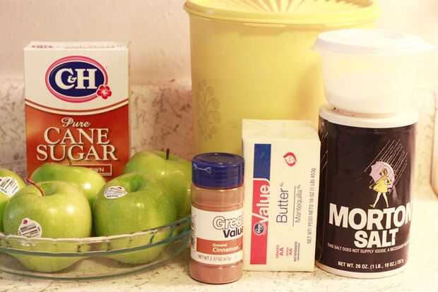4 manzanas granny Smith, cuarteado, tubular y laminas