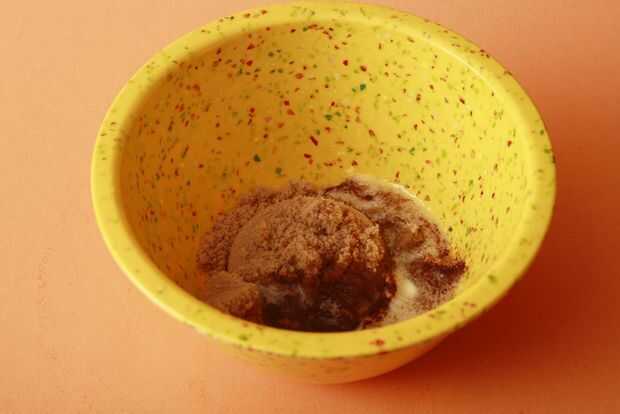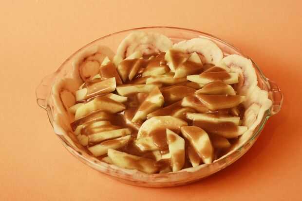 Colocar las manzanas uniformemente dentro de la corteza. Ahora mezclar el azúcar, la mantequilla derretida, canela y nuez moscada en un bol de tamaño mediano. Vierta la mezcla sobre las manzanas.