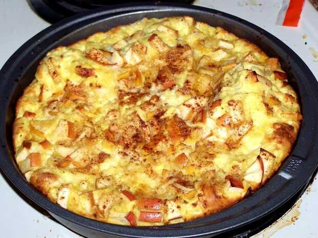Lo que necesitas: 1/2 taza leche 1/2 taza harina 3 huevos 1/4 taza de mantequilla 1 manzana una pizca de canela una pizca de azúcar morena