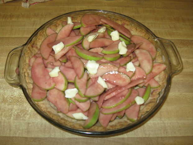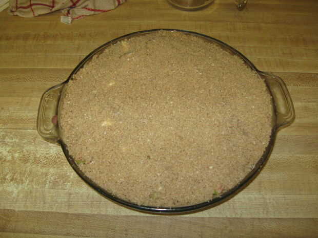 Luego, tomar el crumble y slather encendido! He utilizado la totalidad de mi receta de crumble que enlace en la página de ingredientes. Usted ciertamente podría ir más ligero en el crumble si lo desea.