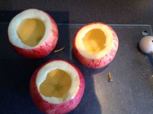 Trate de dejar 1cm de manzana 'pared' en el interior de la piel.