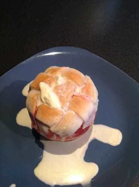 Los pies toman unos 10-15 minutos. Al verlos. Cuando la masa está dorada, llevarlos a cabo. Dejarlos en y la manzana sí mismo finalmente se derrumba en sí mismo.