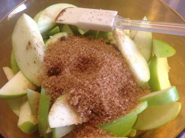 Agregar las manzanas en rodajas en un tazón grande y agregar el resto de los ingredientes