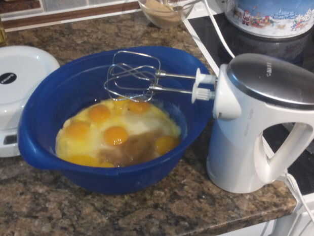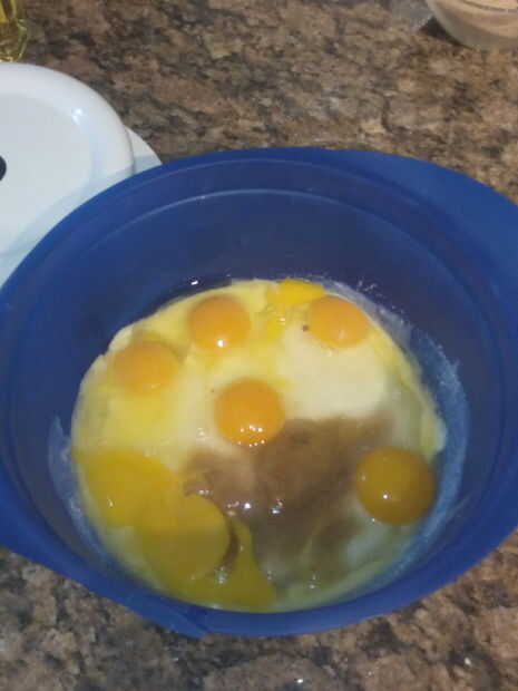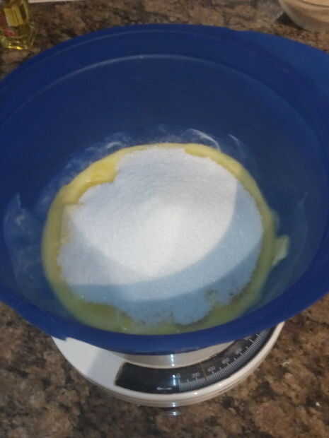 Después de eso me pesó el azúcar en el vaso y añade los huevos.