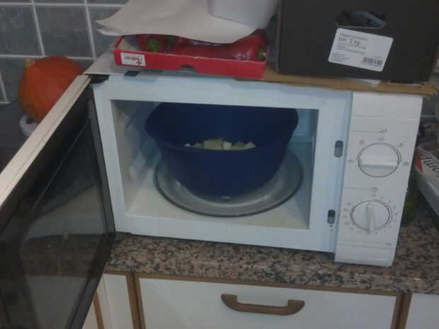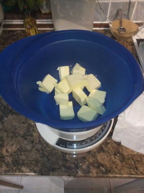 Mi mantequilla vino directamente de la nevera así que era difícil de seguir. Para resolver este problema me corte la mantequilla en trozos pequeños y poner theminto el microondas.