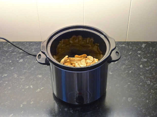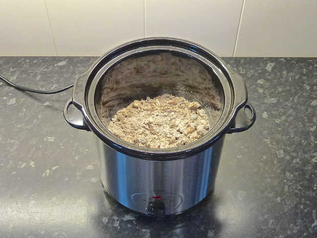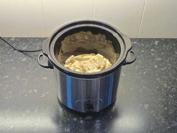 Lecciones aprendidas: mina resultó ligeramente quemado por los bordes. Como con todas comidas cocina lenta que son algo sólida, engrase los daylights vivos fuera de la olla antes de comenzar. Indican spray de cocina antiadherente o mantequilla solo. También comprobaría el plato tal vez 4 horas, el tiempo que tarda para cocinar variará el tamaño de la porción y cada olla individual.