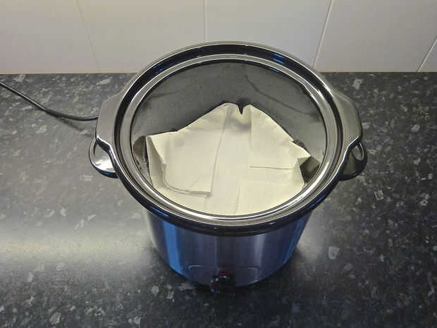 Puede añadir una toalla de papel en la parte superior antes de agregar la tapa y cocinar. Esto aspirará para arriba algo de exceso de la humedad. No nos engañemos, esto no resultará crujiente como una empanada tradicional. La toalla de papel ayuda a algo aunque. Cocinero en baja durante unas 6 horas. Después de unas dos horas su casa comenzará a oler como un trozo de cielo! Servir con crema batida, o tu lado favorito.