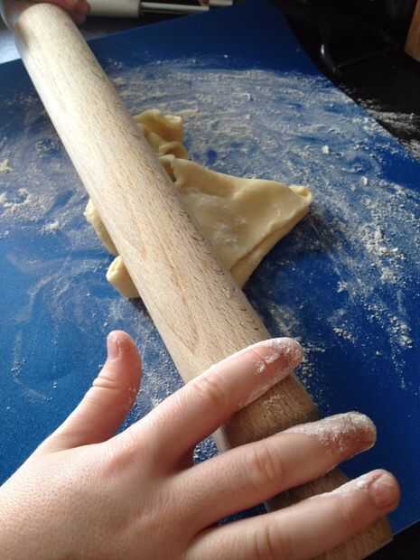 Rodillo hacia fuera cualquier restos de masa, o una hoja nueva si uso listo hecha.