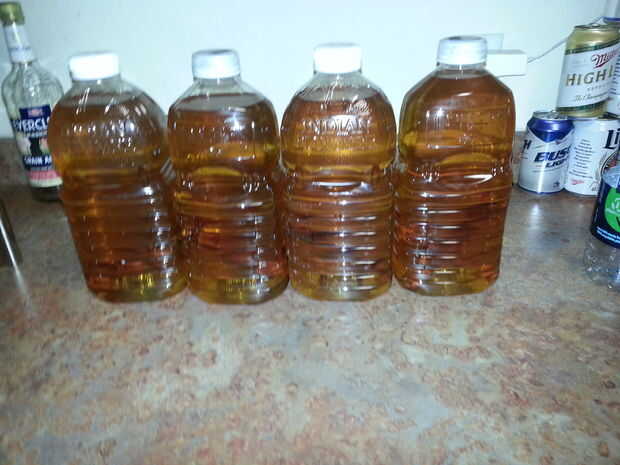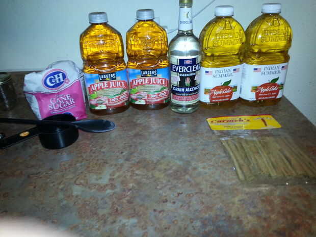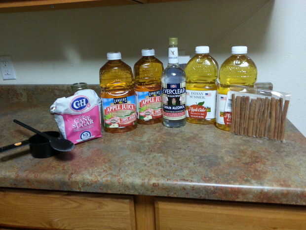 Yo quería hacerlo por un tiempo y finalmente consiguió alrededor a lo que es. encontré esta receta en línea y fue bastante fácil de hacer. Lo principal que necesito fue un hervidor de agua de 5 galones a hervir cosas en. También el licor utilizado para hacer este inflamable por lo que es importante asegurarse de que se enfría completamente antes de agregar. Aparte de eso es bastante fácil de hacer. Tengo mi bifes en una tienda por unos 25 dólares. Hacía falta un tiempo para enfriarse. Esta recetas hechas 2 galones de los tiros de pastel de manzana. Había envasado en las manzana jugo y sidra frascos de plástico que he añadido a él. Para verterla en los tarros de mason para que se vea fresco y fáciles de transportar. Esto es un gran regalo o para llevar a una fiesta. Gran bebida especialmente para la época de otoño e invierno.