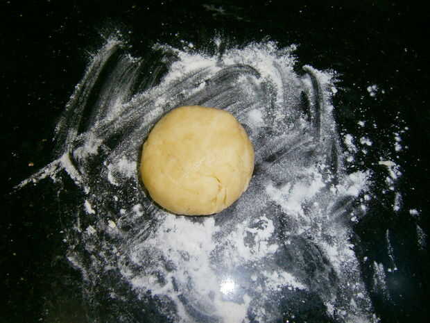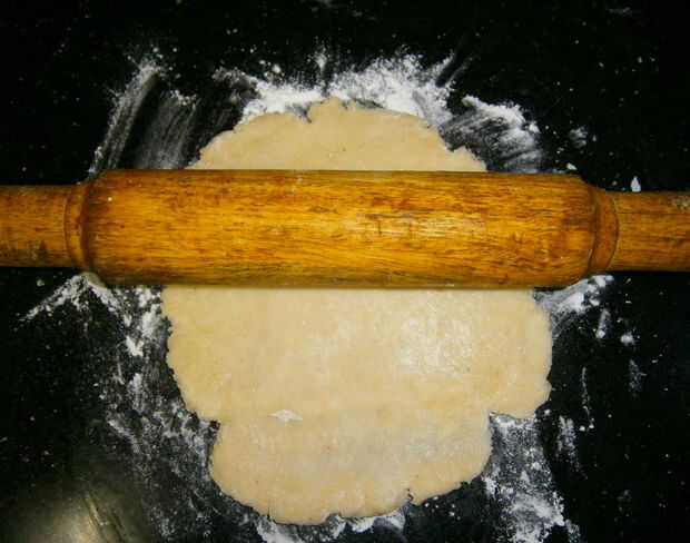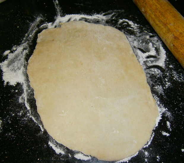Sacar la masa de la nevera. Espolvorear el lugar de trabajo con harina.