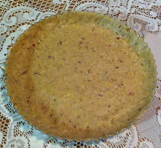 de mantequilla, suave la corteza en un molde de tarta. Tratar de que la corteza