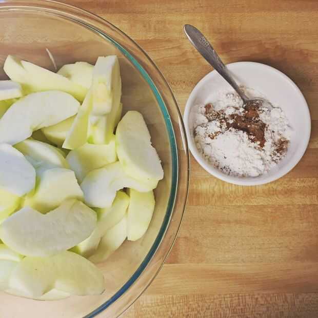Opcional: Agregar una cucharadita o dos de zumo de limón o jugo de naranja a su tazón de fuente de manzanas. Esto ayuda a que la mezcla se adhieren a las manzanas.