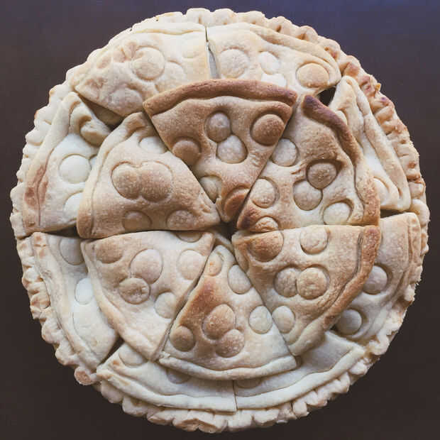 el Pi dígitos PI día tarta de manzana receta incluye los trece primeros dígitos de Pi en la receta. Se recortan los trozos de manzana en dígitos utilizando cortadores de la galleta. Las ranuras en la parte superior del pastel se recortan en la form