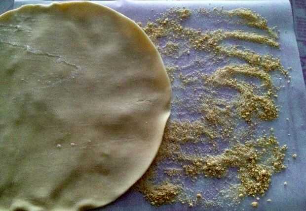 Rodillo hacia fuera corteza superior de la misma manera, luego refrigerar hasta que se necesite. (Lo guardé en mi estera rodante y ponerlo en la nevera, si sólo rodando en pergamino, se podría transferir a invertido hornear y poner en la nevera).