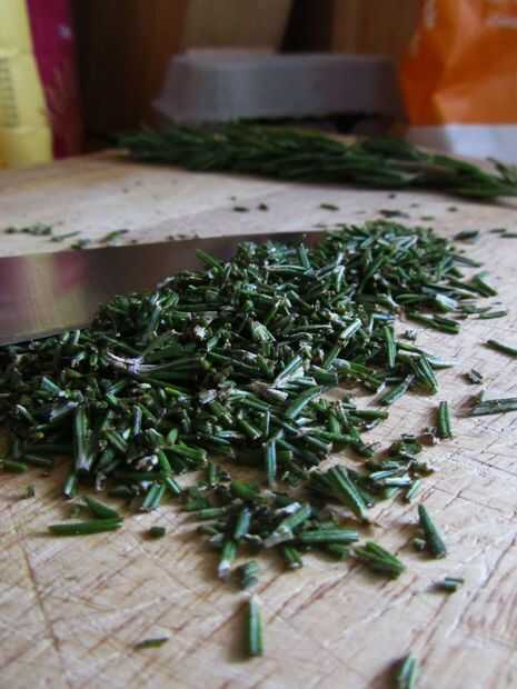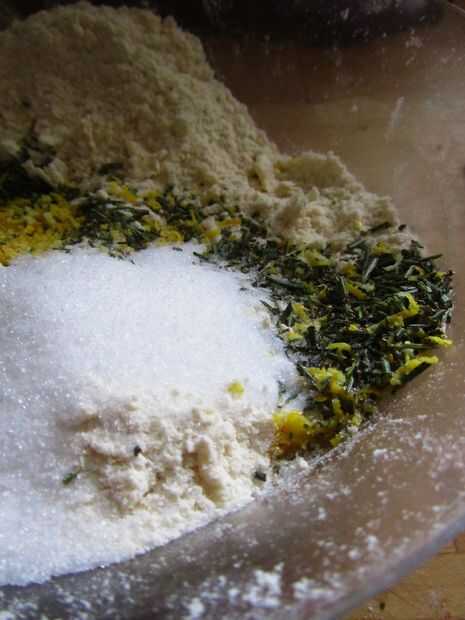 Añadir el azúcar, el romero picado y la ralladura de limón y revuelva a través.