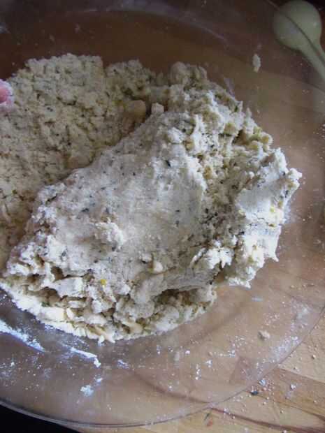 Verter el huevo en la mezcla de harina. Remover con un cuchillo de mantequilla, hasta que la masa comienza a agruparse. En este punto es más fácil conseguir sus manos en y comenzar a presionar suavemente la masa juntos. Añadir un poco más de agua si usted siente que la masa está muy seca, pero intenta agregar lo menos posible, ya que demasiado líquido en pastelería lo provocará reducir el tamaño de la lata.
