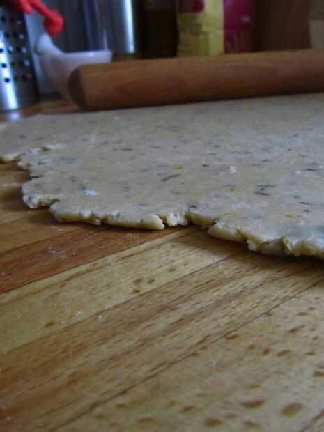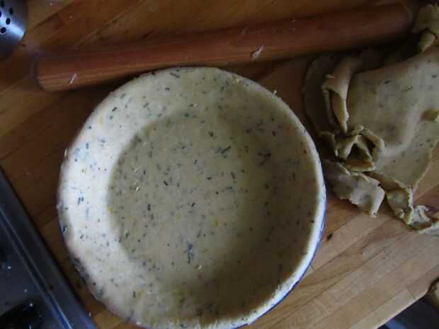 Tomar la masa de la nevera y rodillo fino 2/3 de él hacia fuera en un círculo áspero, un par de pulgadas más grande que el plato de pastel. Coloque la masa sobre la lata y presione firmemente en la base y los lados. Recortar la parte sobrante de los bordes y presione esto en una bola con la parte superior de la tarta. Poner la lata forrada en la nevera para enfriar durante al menos media hora. Esto relaja el gluten en la masa y evita que la masa que encoge en el horno.
