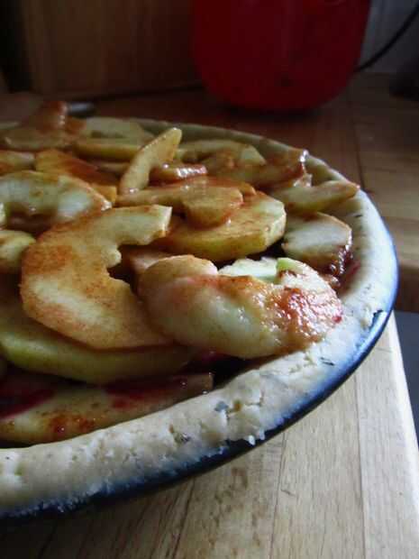 Una vez frío, sacar la tarta y extender con una capa de la mermelada. Superior con una capa de rebanadas de manzana, luego se extendió más mermelada de eso. Continúe hasta que usted ha utilizado toda la mermelada y manzanas.