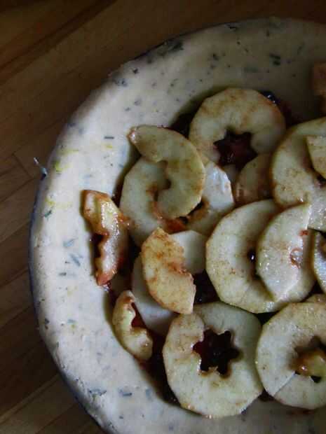 Estirar el resto de la masa y cuelgue sobre la parte superior del pastel. Recorte el exceso de los bordes y presione los bordes junto con el alcance de su mano para sellar la empanada.