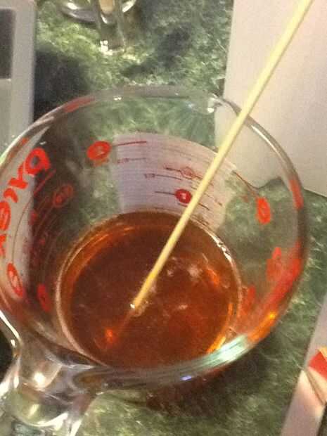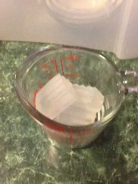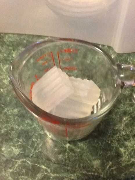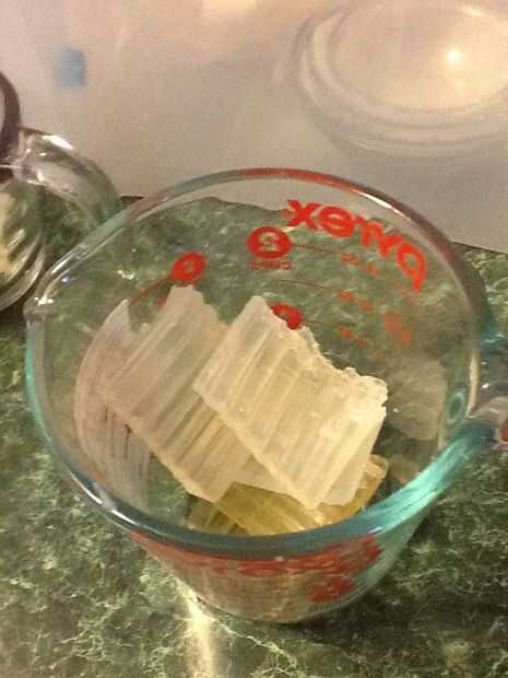 Mida algunos base transparente (no mucho) en un recipiente. Dejar esto de lado. Ahora mida algunas claro y algunos base opaca y derretir intervalos de 30 segundos hasta que se haya derretido. Agregar alguna fragancia de manzana. Admito que he añadido algunos rosa y verde, que ahora lamento. Comenzó una pequeña cantidad de verde