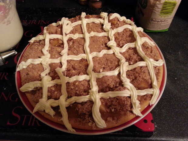Permite así seguir adelante y hace un comienzo en ese relleno de manzana...