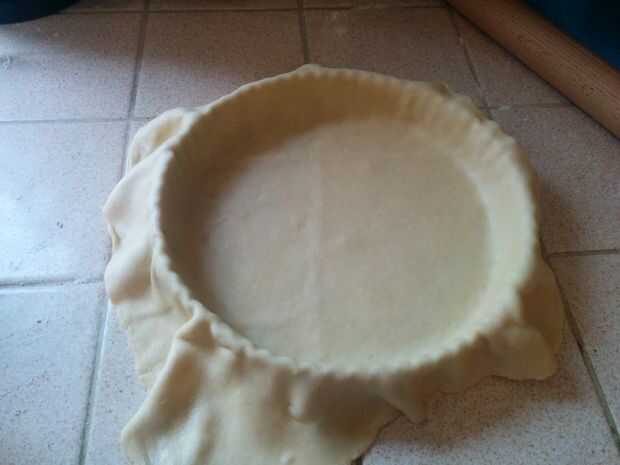 1. Estirar la masa sobre una superficie ligeramente enharinada hasta que quede más grande que su lata y unos 4mm de espesor.