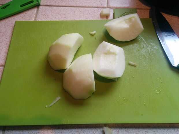 1. Pele cada manzana, esto no es obligatorio pero prefiero los pelados y cortados en cuartos.