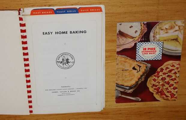 La tarta es de Fácil inicio de la hornada por la arena, Taylor & Wood Co. (ahora King Arthur Flour), que creo que fue publicado en 1938 cerca. La receta de "Pastel de melocotón de coronación" es de Maridos de empanadas 12 como los mejores, recetario de una "tía Jenny" publicado promover la marca Spry de acortamiento en 1952 vegetal. (Esta marca es sobre todo descontinuada ahora.)
