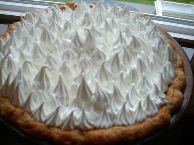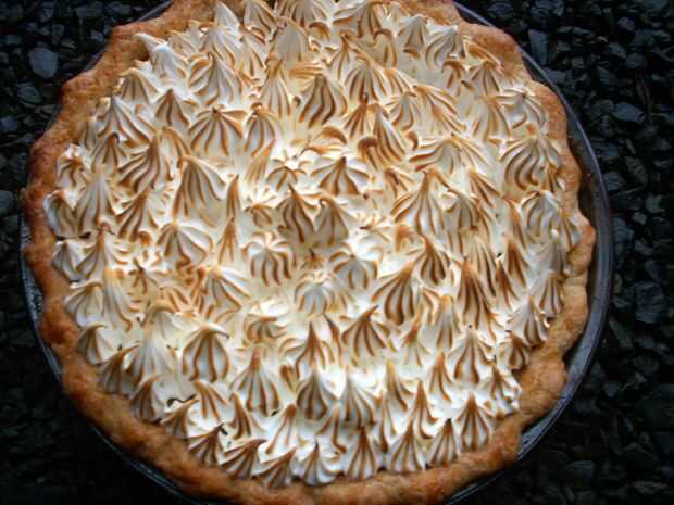 Comenzar por calentar las claras de huevo y el azúcar, batiendo suavemente, en una caldera doble. Calienta esta mezcla hasta que llegue a 100 grados, batiendo moderado todo el tiempo. Cuando la mezcla llega a 140 grados, retirar del calor y batir (o puesto en un mezclador y puesto en velocidad media) hasta medio tieso picos para. Transferir esto a una manga pastelera (o simplemente extienda con una espátula) cuanto antes y la pipa en la parte superior de la tarta fría. Para terminar, utilice un soplete para dorar la parte superior. Luego, lo más importante y disfrutar!