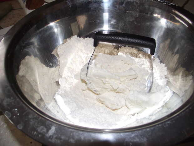 • Usando un cortador de masa: mezclar la harina, la manteca y la sal.
