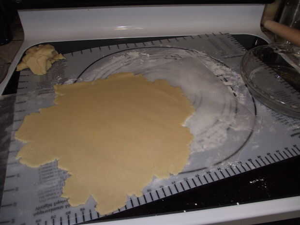 • Estirar en forma de pastel lo suficientemente grande como para caber en un plato de pastel de 9"