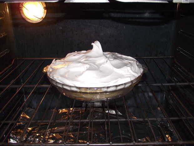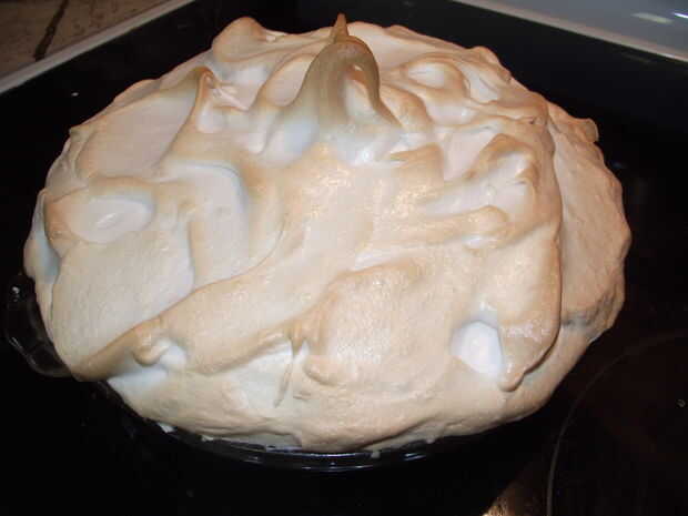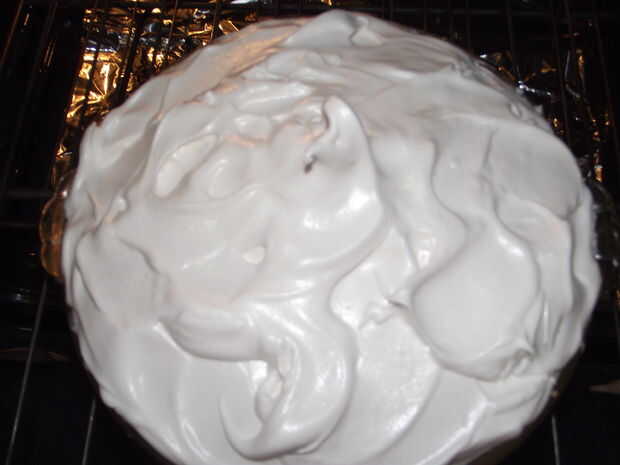 • Extender el merengue sobre la parte superior (Asegúrese de que se separan el merengue hasta el borde de la tarta como esto evita correr por los lados)