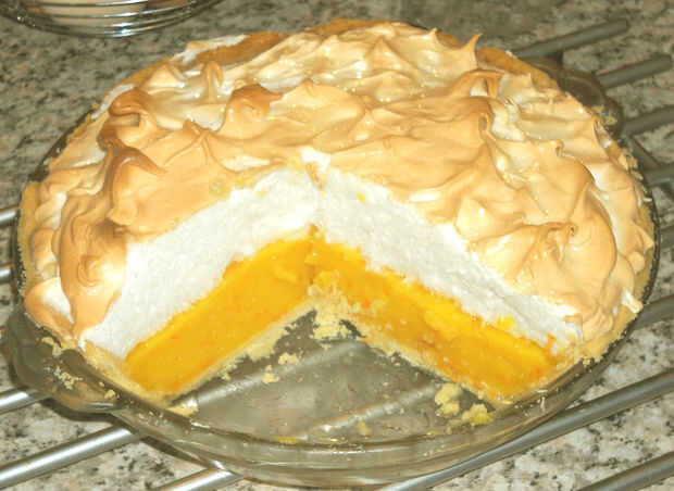 Relleno con merengue cuando el relleno todavía está caliente la parte superior. Asegúrese de que merengue cubre completamente el relleno y que va directamente hasta el borde de la corteza. Hornear de 10 a 12 minutos o hasta que el merengue empieza a carmelize (vuelta marrón).