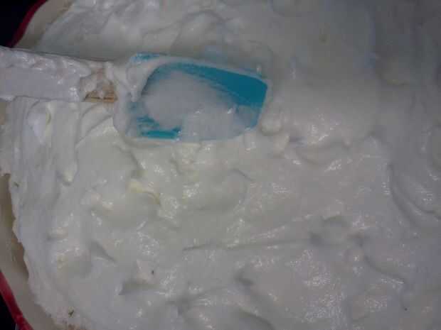 Con una espátula añadir el merengue relleno para la tarta alisando y separarse hacia fuera.