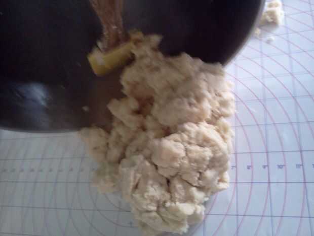 Llevar la masa a una gran área de superficie plano y mano Mezcle lo suficiente como para formar una bola de masa.