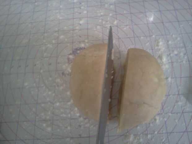 Cortar la bola por la mitad. Envuelva la envoltura de plástico en la mitad y guardar en la nevera para otro dia