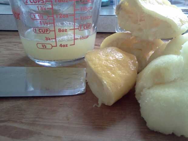 2/3 taza recién exprimido zumo de limón (yo usé 2 1/2 limones grandes)