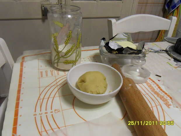 1. cortar la mantequilla en la harina mezclando y rodar con los dedos, para que la pasta es desmenuzable.
