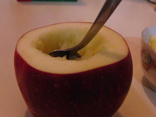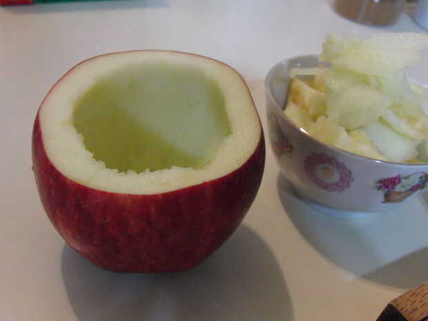 Para asegurarse de que la manzana "corteza" (fuera de la manzana) no ponerse oscura, añadir unas gotas de jugo de limón.