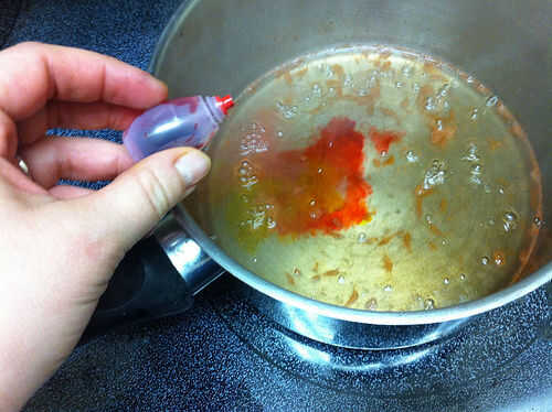 He añadido el colorante de caramelo también; era demasiado pálido sin él, y quería la tarta de mousse para asemejarse a un pomelo cortado.