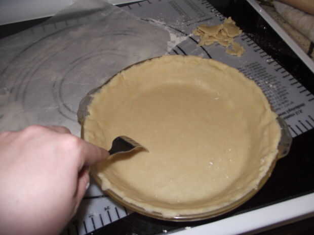 • Estirar en forma de pastel lo suficientemente grande como para caber en un plato de pastel de 9"