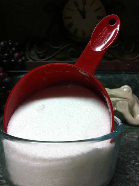 Medir una y media tazas de azúcar para el baño de la caza furtiva y establecer