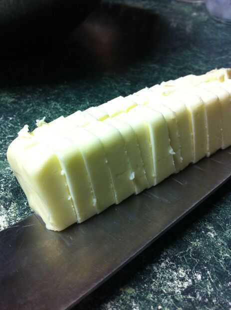 la mantequilla en cubos más pequeños que el mostrado en la imagen.