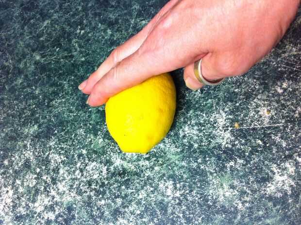 Presione hacia abajo y el limón el rodillo hacia adelante y hacia atrás. No apriete a la muerte, sólo